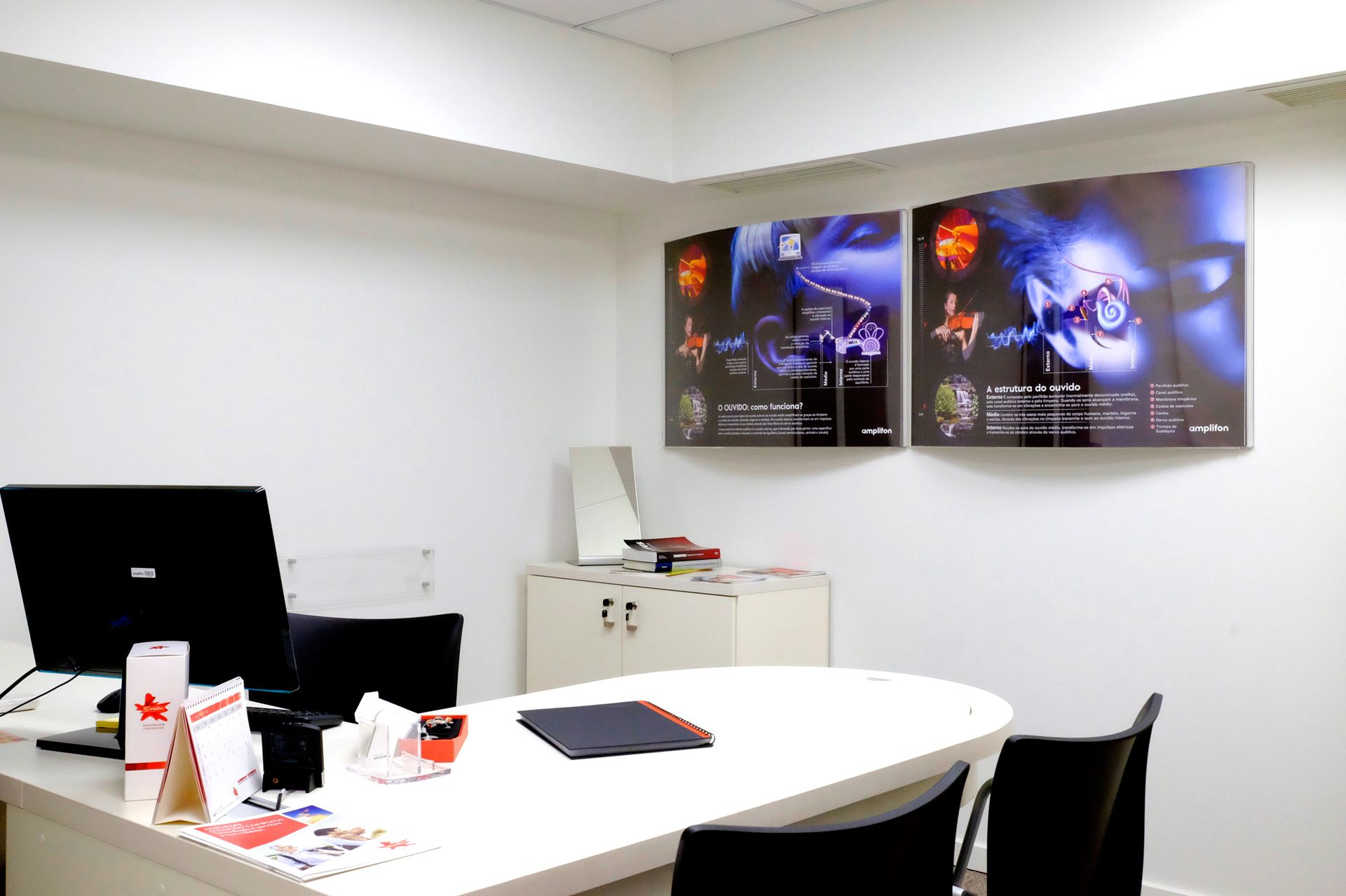 A WDL desenvolveu um vasto conjunto de peças gráficas para as diversas lojas da Amplifon, nas quais se evidenciam as montras, displays, reclamos, painéis, sinaléticas, autocolantes, vinis, fichas de produtos e preçários.